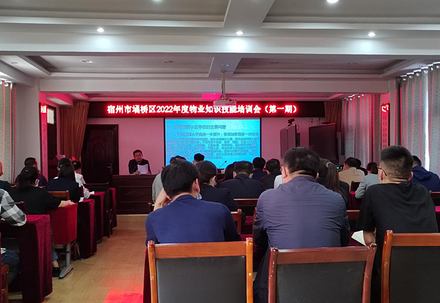 为增强全区物业管理与服务工作水平、物业服务企业行业自律,切实履行好安全生产责任,区住建局于2022年4月11日-13日,分四期组织召开了埇桥区物业知识技能培训会,各街道物业办、社区物业工作站负责人及全区物业企业法人代表参会。