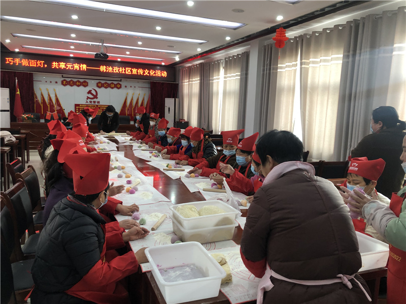为弘扬中华民族传统文化,营造浓厚的节日氛围,2月23日下午,沱河街道韩池孜社区妇联组织辖区妇女在新时代文明实践站开展“巧手做面灯,共享元宵情”传统文化宣传活动。