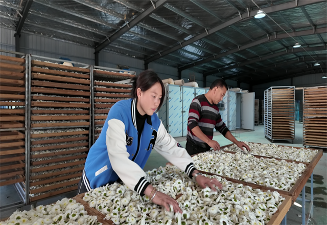 村头的加工车间里,现代化的烘干设备取代了传统的晾晒场。王银朝介绍,通过精准控温控湿,原本需要数日晾晒的工序,现在只需短时间内就能完成。这套设备不仅提升了效率,更让鲜花在最佳状态下完成蜕变。