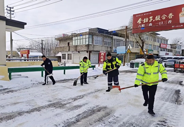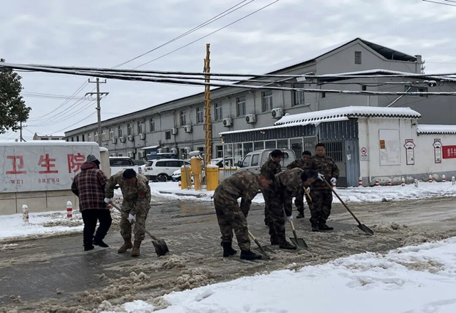 纷飞的大雪为乡村披上银装,也给道路通行带来挑战。解集镇人武部迅速响应,集结50余名民兵,并联动蓝天救援队志愿力量,共同开展破冰除雪行动。