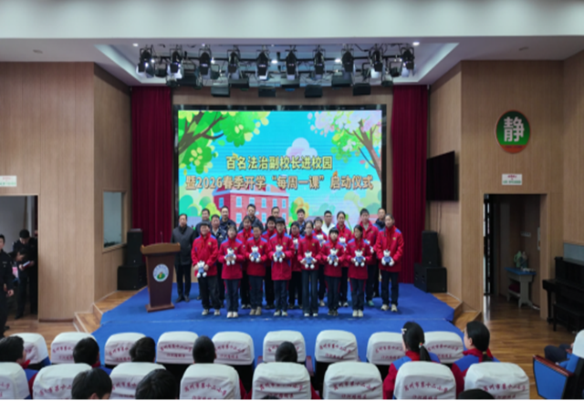 下午2时10分,两位主持人以简洁生动的语言向师生介绍了活动的意义,并强调法治教育对青少年成长的重要性,迅速点燃现场气氛。