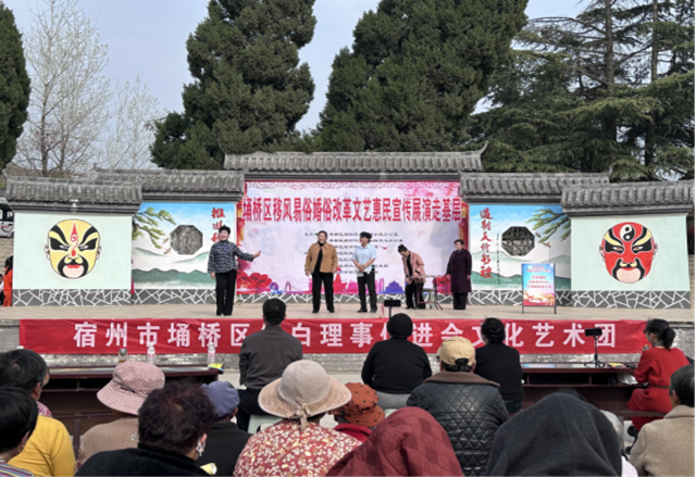 理论政策云宣讲。埇桥区时村镇、苗庵镇、解集镇等各直播间累计发布理论宣讲短视频100余个,组织开展理论宣讲55场次。如,采用“理论+艺术”模式,在东环公园举办“埇讲万家”共创直播活动,将党的创新理论与快板、大鼓等有机融合,直播获赞10万余次。