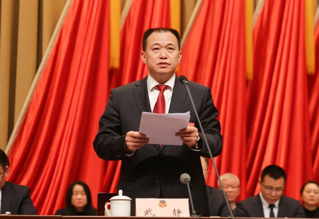 大会执行主席:武静、杨礼文、沈含光、葛萌萌、张明、刘全志、喻玮在主席台前排就座。区政协主席武静主持会议。